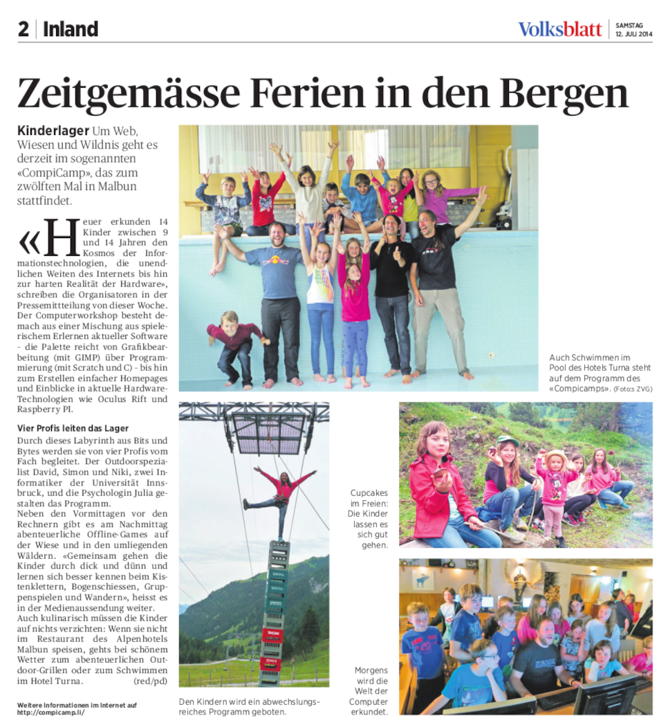 ---> CHF 950.- Freizeitprogramm, Computer- und Roboterworkshop, Verpflegung Unterkunft in 2-3 Bettzimmern im Alpenhotel 'Vögeli' Malbun